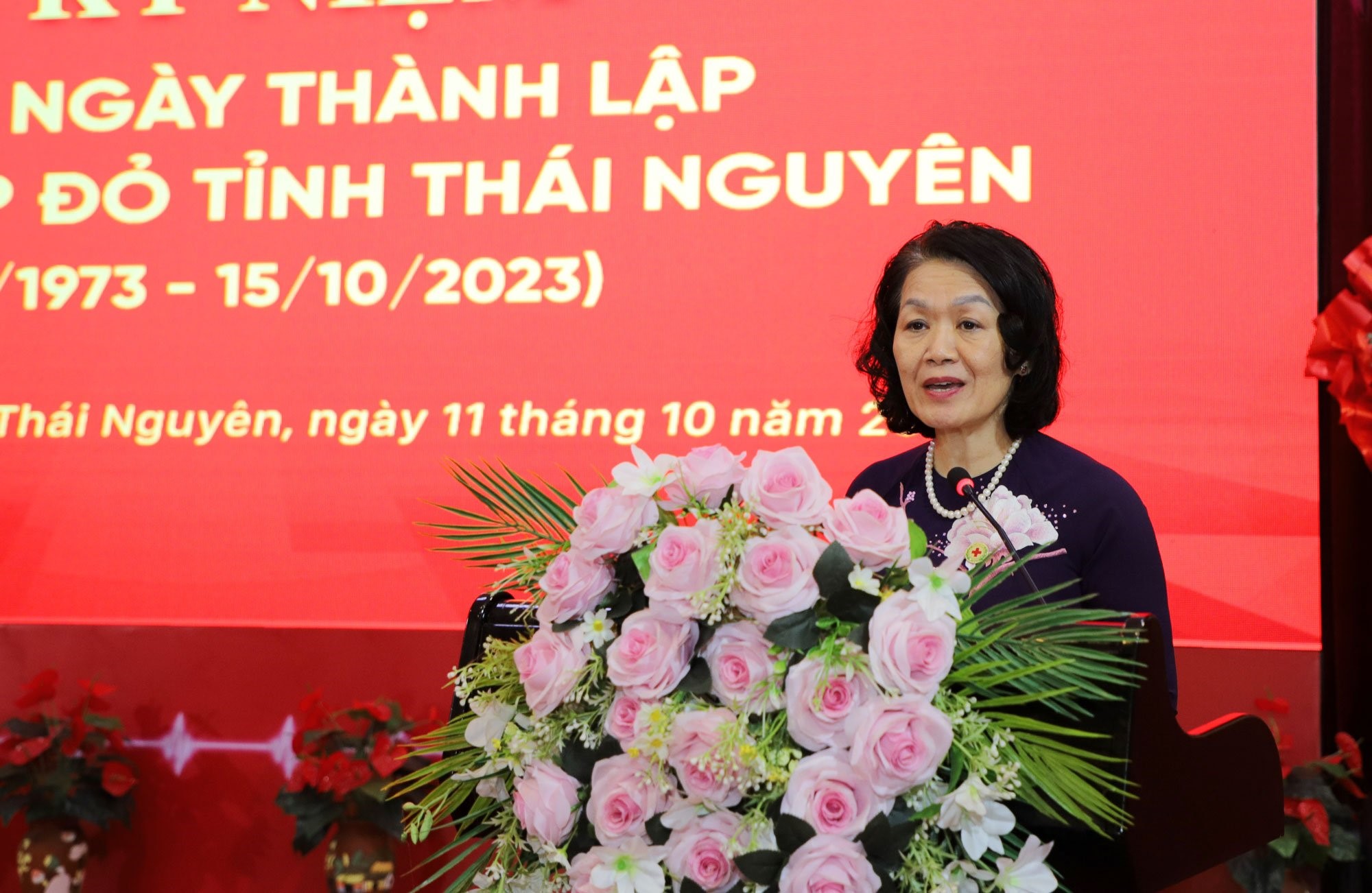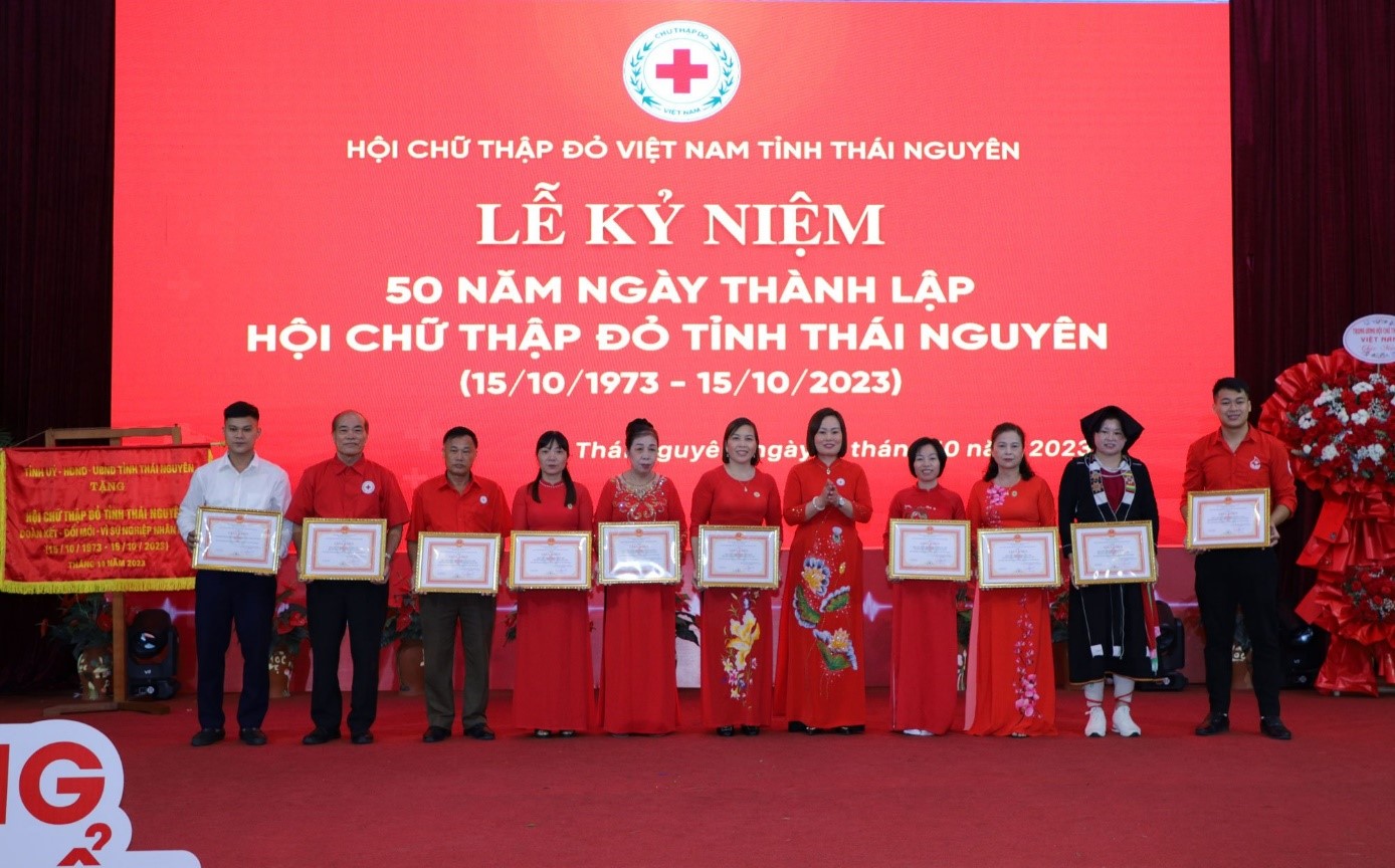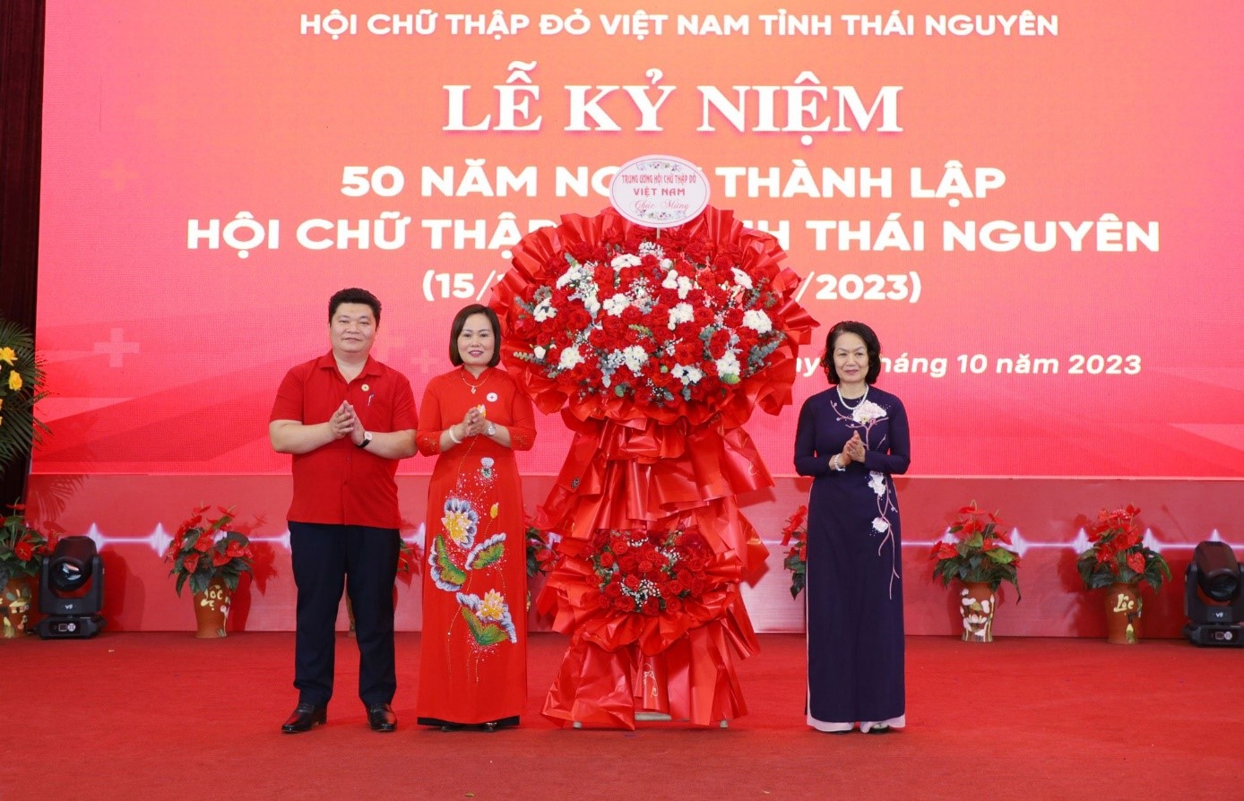 Ngày 11/10/2023, Hội Chữ thập đỏ tỉnh Thái Nguyên tổ chức Lễ kỷ niệm 50 năm Ngày thành lập (15/10/1973 – 15/10/2023). Tham dự Lễ kỷ niệm có đồng chí Bùi Thị Hòa, Bí thư Đảng đoàn, Chủ tịch Hội Chữ thập đỏ Việt Nam; đồng chí Phạm Hoàng Sơn, Phó Bí thư Thường trực Tỉnh ủy, Chủ tịch HĐND tỉnh; Đặng Xuân Trường, Ủy viên Ban Thường vụ Tỉnh ủy, Phó Chủ tịch Thường trực UBND tỉnh, Chủ tịch danh dự Hội Chữ thập đỏ tỉnh Thái Nguyên; đồng chí lãnh đạo các Ban Xây dựng Đảng của Tỉnh ủy, Văn phòng Tỉnh ủy, Văn phòng HĐND, Đoàn Đại biểu Quốc hội tỉnh, Văn phòng UBND tỉnh; lãnh đạo các sở, ban, ngành, Trường Chính trị tỉnh, các tổ chức chính trị xã hội, các tổ chức xã hội nghề nghiệp của tỉnh Thái Nguyên; các đồng chí lãnh đạo Huyện ủy, Thành ủy, lãnh đạo HĐND, UBND các huyện, thành phố thuộc tỉnh; đại biểu Hội cán bộ cơ quan Trung ương và Doanh nhân quê Bắc Thái tại Hà Nội; Hiệp hội doanh nghiệp tỉnh, Hiệp hội Doanh nghiệp nhỏ và vừa tỉnh, Hội doanh nghiệp trẻ tỉnh Thái Nguyên, Hội doanh nghiệp thành phố Phổ Yên; Hiệp hội doanh nhân cựu chiến Binh tỉnh Thái Nguyên; đại biểu Tập đoàn Xăng dầu Việt Nam, Công ty Xăng dầu Bắc Thái; Công ty Cổ phần Thương mại Thái Hưng; Công ty TNHH ô tô Mitsubishi Việt Nam Thái Nguyên; Công ty Samsung Thái Nguyên; Công ty Nutifood Việt Nam; Công ty CP đầu tư và Thương mại TNG; Công ty TNHH Thang máy cơ khí Tân Lập; Hợp tác xã Chè Hảo Đạt; Hợp tác xã Hương Vân Trà; Công ty TNHH Trung Thành Thái Nguyên; Công ty TNHH quảng cáo và tổ chức sự kiện Việt Bắc; Công ty TNHH Cường Đại và các cá nhân, nhà hảo tâm trên địa bàn tỉnh.