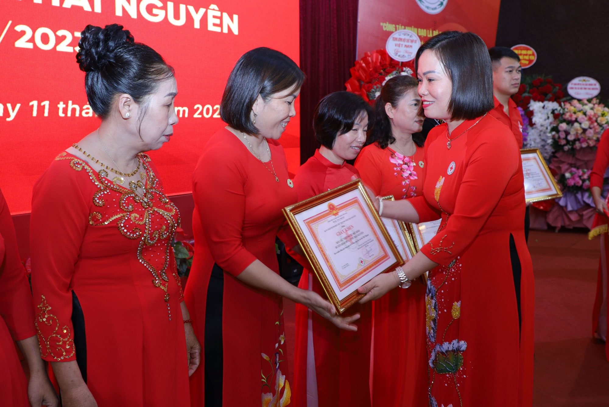 Đồng chí Kiều Thị Thao, Ủy viên BCH Trung ương Hội Chữ thập đỏ Việt Nam, Chủ tịch Hội Chữ thập đỏ tỉnh Thái Nguyên trao khen thưởng cho các cá nhân có thành tích xuất sắc trong công tác nhân đạo