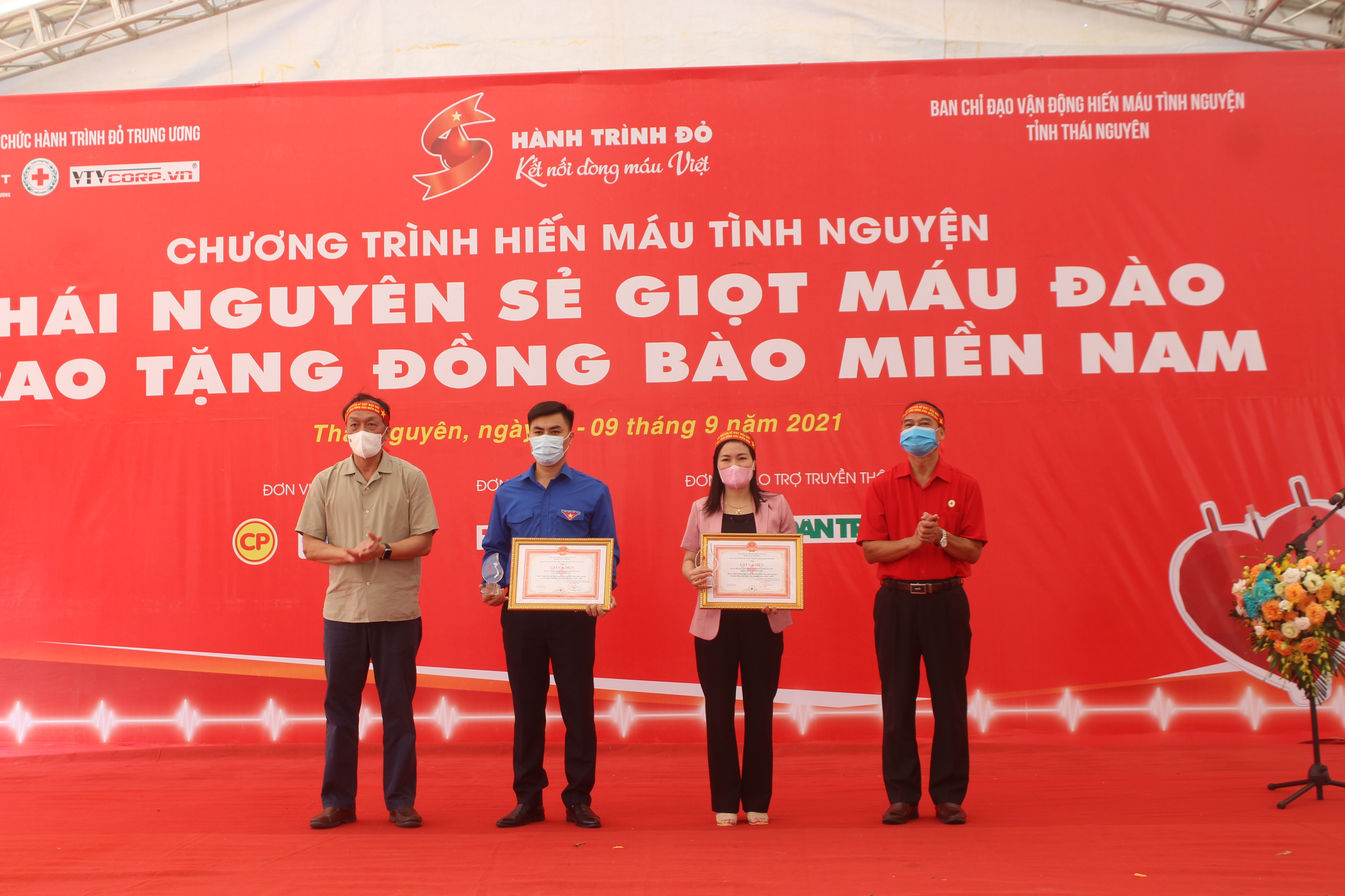 Cũng tại Chương trình, Ban Tổ chức đã trao tặng tượng trưng 1.000 đơn vị máu hiến an toàn của Nhân dân tỉnh Thái Nguyên cho Nhân dân miền Nam. BTC Chương trình công bố Quyết định trao tặng cho 12 tập thể và 65 cá nhân có thành tích xuất sắc trong phong trào HMTN, trong đó, Trung ương Hội CTĐ trao 3 kỷ niệm chương cho 3 cá nhân tiêu biểu, trao bằng khen cho 7 tập thể và 12 cá nhân; Hội CTĐ tỉnh Thái Nguyên trao giấy khen cho 5 tập thể và 50 cá nhân. Tuy nhiên, trong bối cảnh dịch bệnh COVID -19 nên BTC tổ chức trao biểu trưng, giấy khen cho 2 tập thể và 5 cá nhân trên địa bàn Thành phố Thái Nguyên.